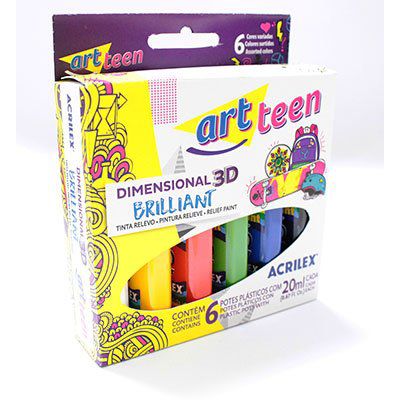 Tinta Relevo dimensional C/6 Cores Brilliant 20ml 3D Acrilex